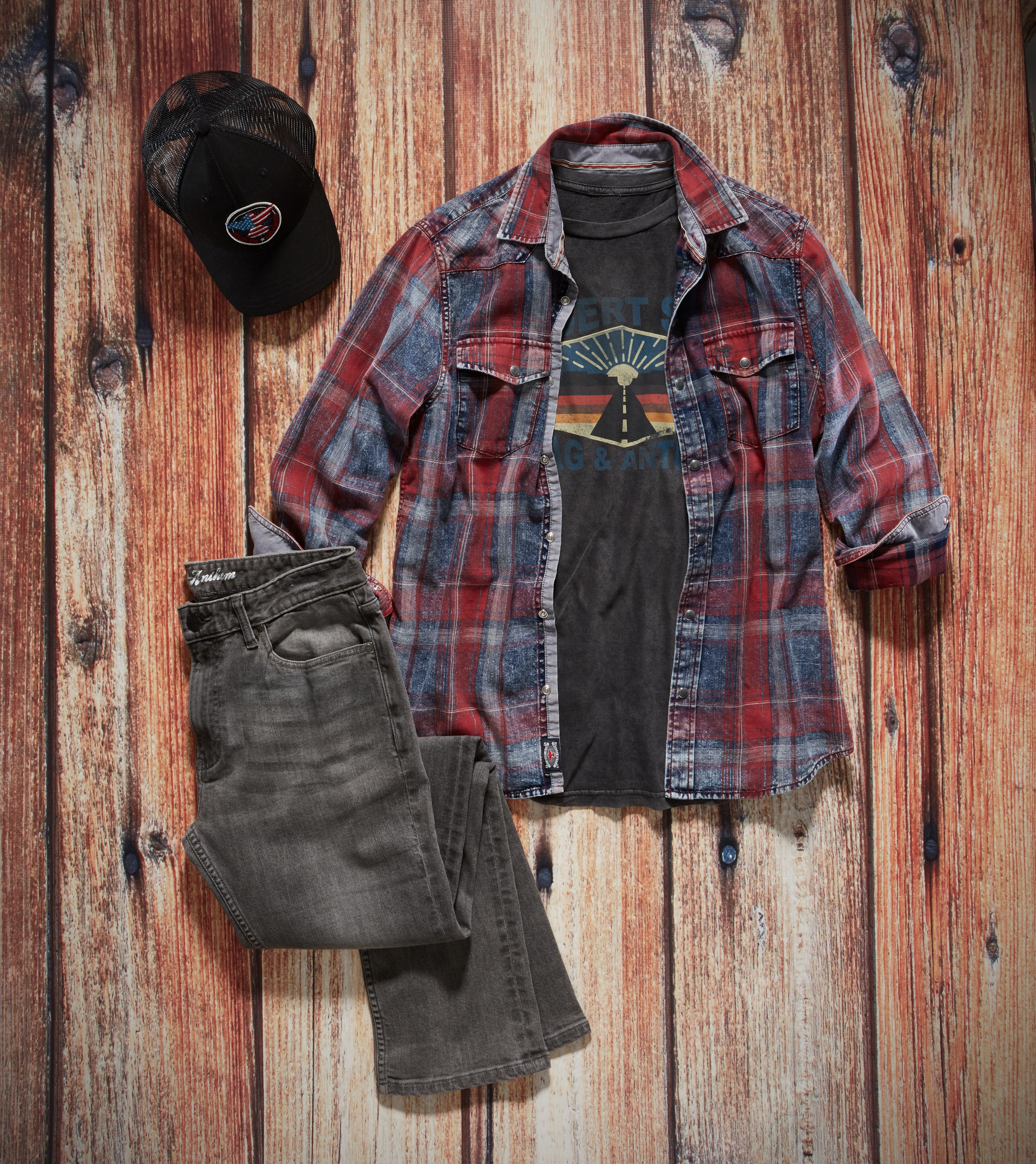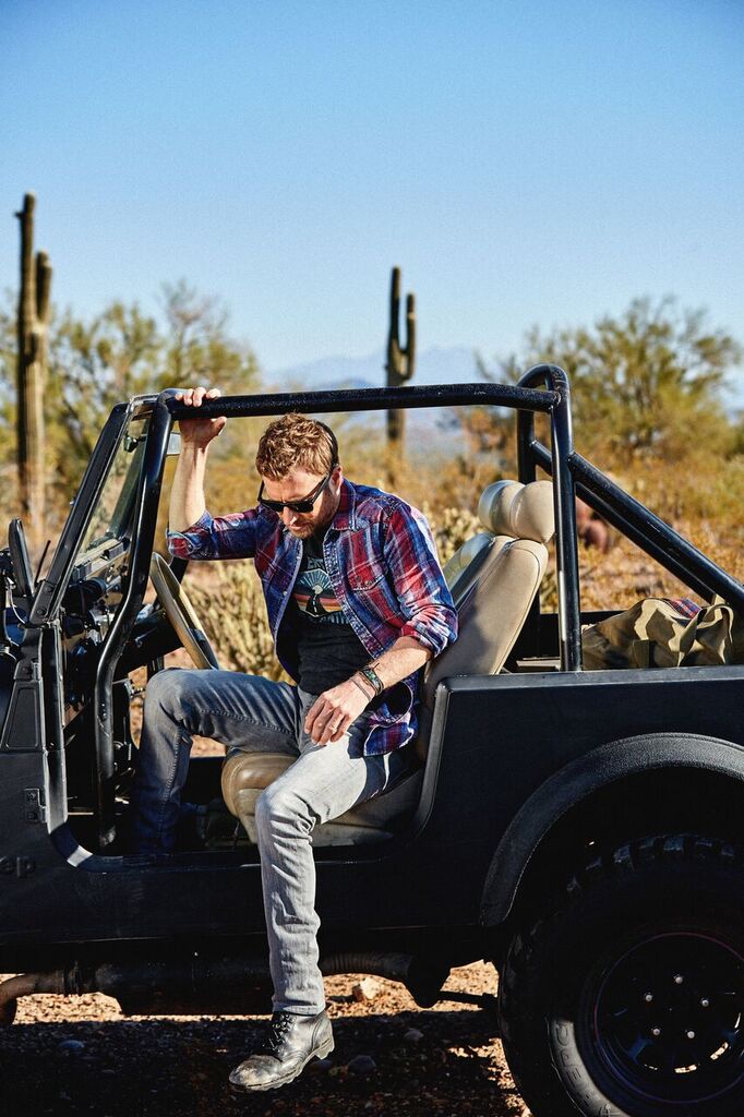 With his less-is-more philosophy in mind, Bentley definitely already has a few pieces from his own collection he hasn’t been able to stop wearing. “I love this black-and-red check soft flannel shirt. You can’t go wrong with a red flannel. It just always looks good and rock n’ roll,” he said. “With the weather being the way it is, I’ve been wearing that every day.”