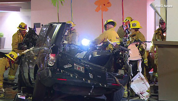 As we previously reported, former NBA player Rasual Butler, 38 and his R&B singer wife, Leah Labelle, 31, were tragically killed in a car accident on Jan. 31. Photos of the fatal crash have now been revealed, showing Rasual’s black Range Rover nearly cut in half in a parking lot of a Studio City, CA shopping center. The crash, which took place around 2:00 a.m., happened after Rasual reportedly hit a parking meter. He then slammed into a wall and flipped over in to the shopping center’s lot. LAFD, captured in the photos below, responded to the call around 2:30 am, but it was unfortunately too late because the victims were already dead.