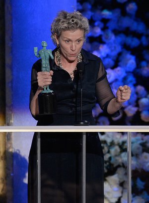 Frances, who is nominated for an Oscar for Best Actress for "Three Billboards Outside Ebbing Missouri," has had a huge 2018 award season so far with the film and her role. She won a Golden Globe for Best Performance by an Actress in a Motion Picture – Drama, A BAFTA for BAFTA Film Award Best Leading Actress, A Critics Choice Award for Best Actress, and a SAG Award for Outstanding Performance by a Female Actor in a Leading Role.