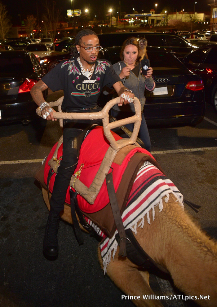 Quality Control knows how to throw a dang party! Migos member Quavo brought out the whole hood to Empire Lounge to celebrate his special day. Huncho rode into his party on a camel and enjoyed a whole lot of revelry thanks to the other animals, belly dancers and rappers who met him there.