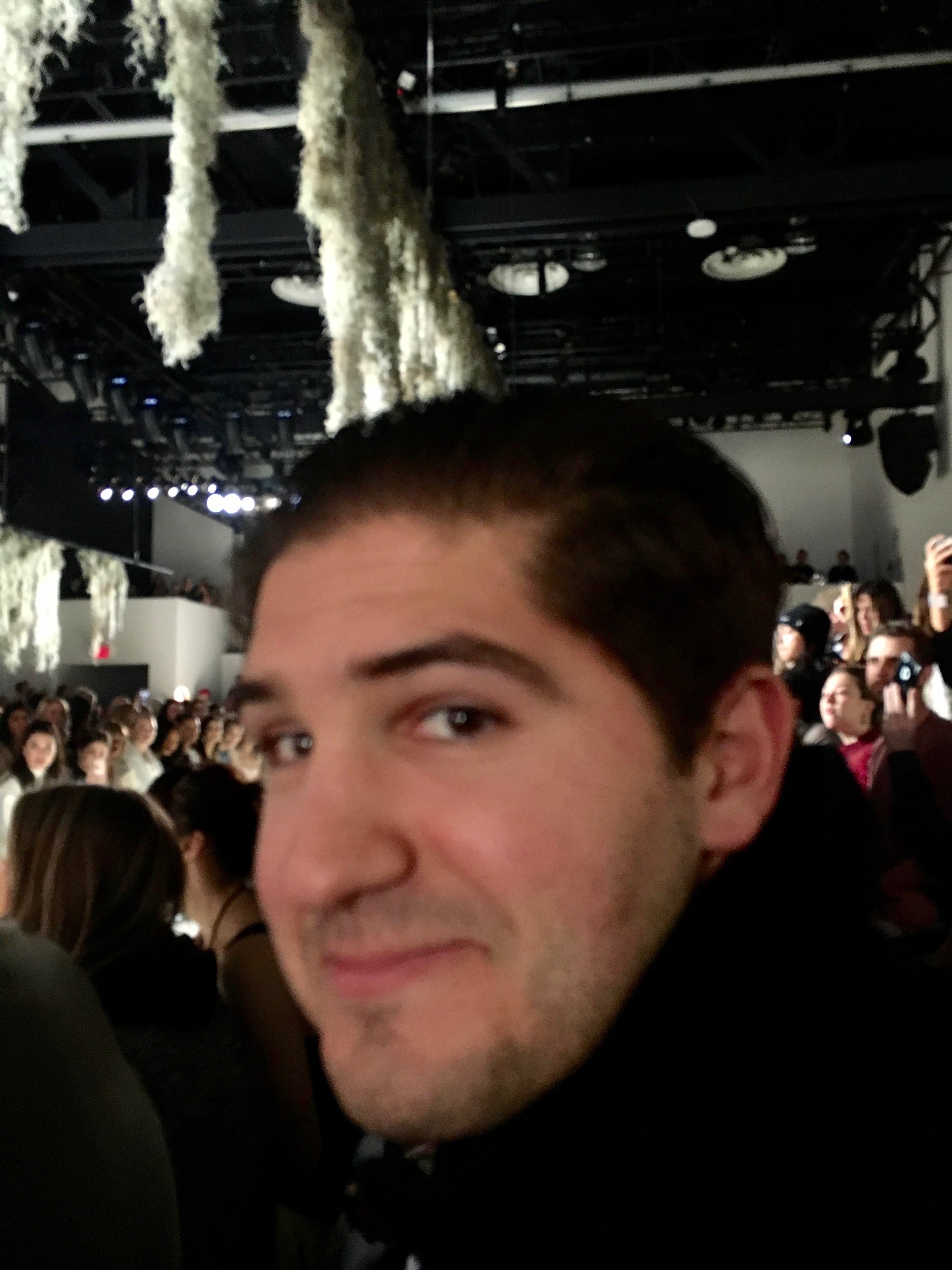 Like music or sports, fashion is a shared hobby, and we can create a superintimate space around that. This intimate space where clothes are revealed is not open to everyone. After Jonathan took his bow, and I told Joey that my favorite part of any fashion show is seeing a designer be applauded and appreciated for his or her work, the lights went on and Kate and Devon Windsor (who she was sitting next to) stood up, possibly to head backstage and greet Jonathan. People started begging for selfies with Kate, and Joey wondered if he should too. I told him to go for it, but the crowds were building, and Joey had definitely never taken a celebrity selfie before. I know he likes to excel at all things, and he probably felt nervous. What if he dropped the phone? Also, remember the blurriness issue?