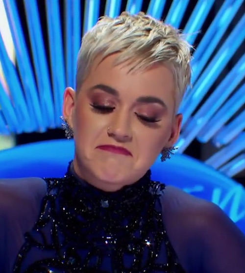 Katy continues to get ABC’s American Idol reboot some much-needed attention. A week ago Katy was kissing contestants, and last night she was laid an unenthusiastic kiss on her enemy’s ass during an audition. Luke Bryan asked a male contestant, “Who do you look up to as an artist?” He replied, “I’m sorry for this, Katy,” and said Taylor. Inside Katy’s head might have been playing the siren from Kill Bill, but on the outside she remained diplomatic by responding: “Oh you don’t have to be sorry!” The contestant then doubled down on a risky gamble by uttering, “I love Taylor Swift,” and Katy awkwardly said: