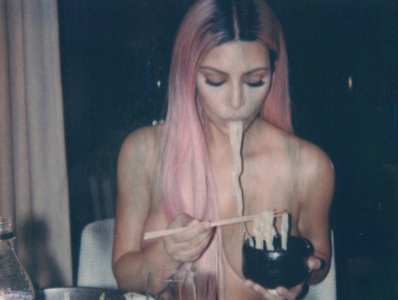 Kim Kardashian Eats Noodles Topless, Too!