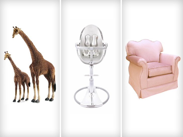 Our sources say they hit Petit Tresor to scoop up 3 giant stuffed giraffes. We know, we know … how much for the giraffes in the window? We're told Kris dropped $3,600 just for those. She also purchased a pink nursery glider chair, with matching ottoman, for $4,200 — and threw in another $550 for a silver high chair.