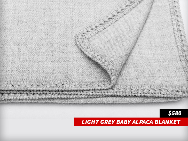 Sources tell us … Kylie was showered with lavish gifts from Petit Tresor in Beverly Hills, and one item was a light grey baby alpaca blanket from a Kardashian sister.