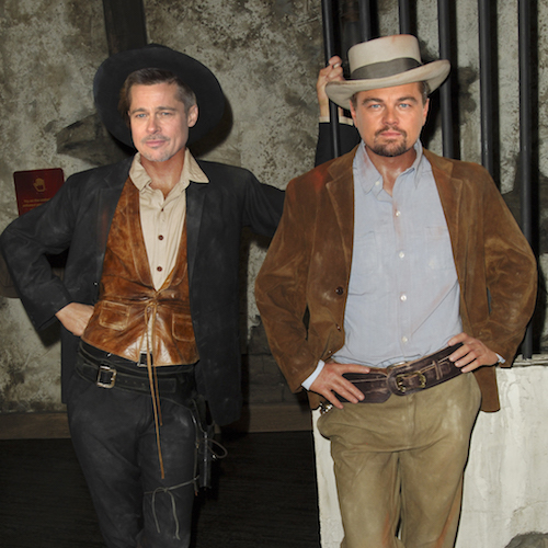 That’s a Photoshopped picture of Brad Pitt and Leonardo DiCaprio’s faces on the wax figures of film legends Robert Redford and Paul Newman (as their characters from Butch Cassidy and the Sundance Kid). But if Quentin Tarantino’s instincts prove to be correct, then Madame Tussauds better get ready to retire Bobby and Paul and start working on carving a new legendary duo out of wax. But maybe they can keep that sassy pose for Leo?