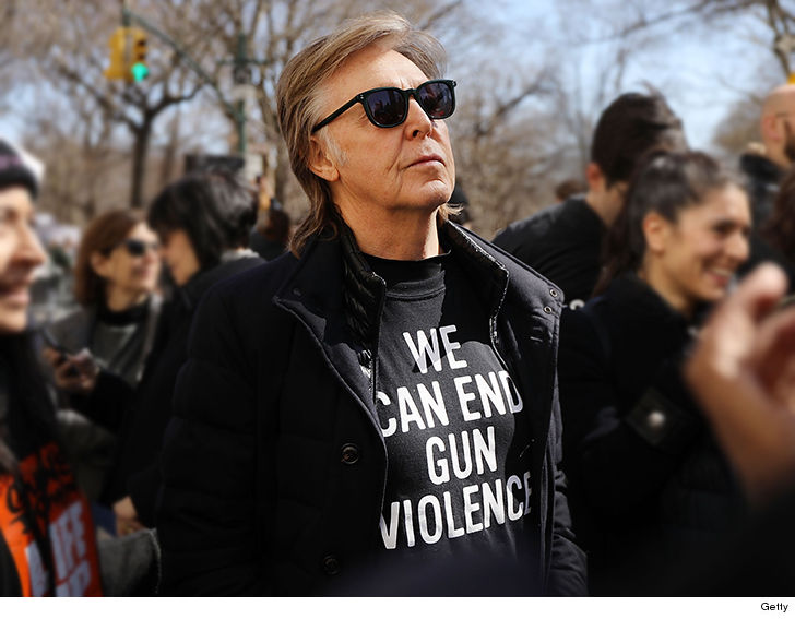 Paul McCartney showed up this morning to the march in N.Y.C. wearing an anti-gun t-shirt not far from where John Lennon was shot in 1980.