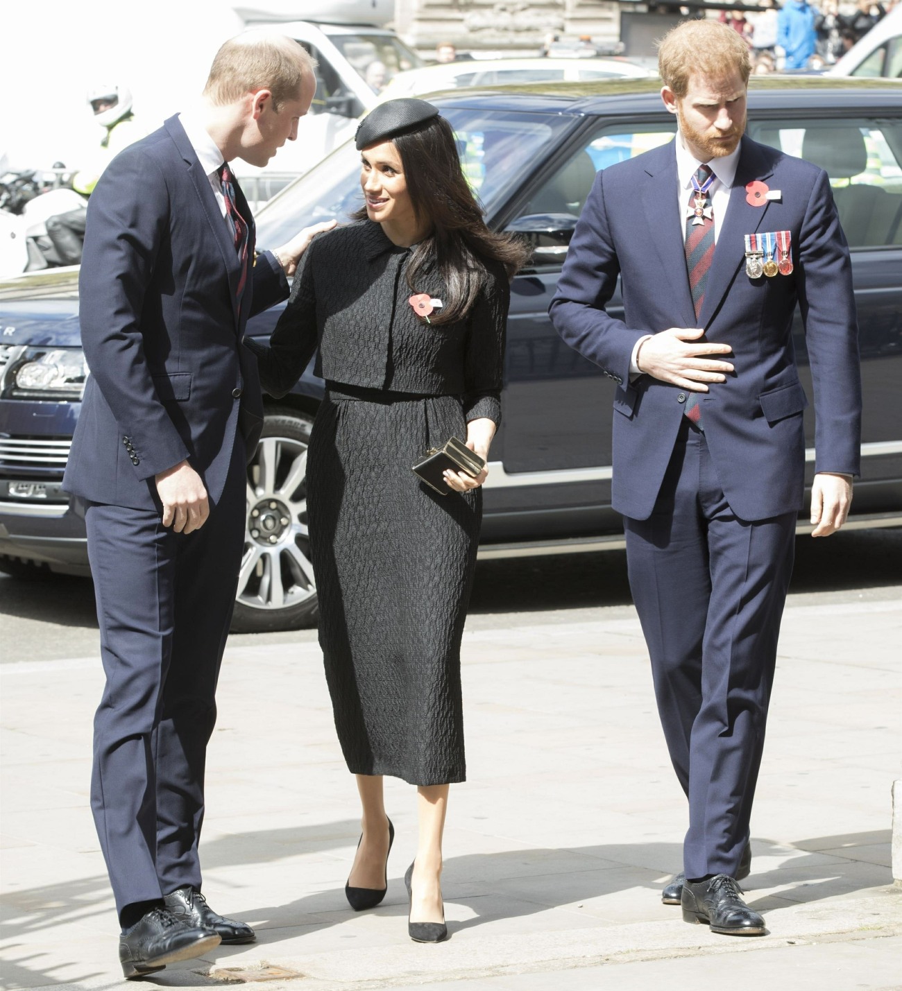 April 25, 2018As we discussed earlier, today is Anzac Day, a day of commemoration for the Australian and New Zealand troops who fought in Gallipoli during World War I. Prince Harry and Meghan Markle got the assignment to attend the dawn-service. Harry was also tasked with laying a wreath at the Cenotaph, and then a few hours later, Harry, William and Meghan stepped out for another commemoration service, this time at Westminster Abbey. William greeted his future sister-in-law with warmth: he put his arm around her and kissed her cheek in greeting.