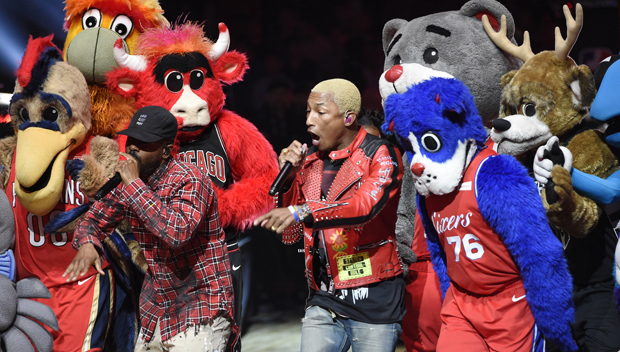Welcome back, N.E.R.D! The iconic Pharrell Williams-led trio went through a series of their biggest hits, like “Lapdance”, “Rockstar”, and “1000” during their halftime performance at the NBA All-Star Game on February 18, and it was glorious. It’s been ages since we’ve seen N.E.R.D together, and the Staples Center was the perfect venue for their introduction. The band turned the arena into a huge party, complete with a pack of team mascots twerking, and an entire army of cheerleaders. But halfway through halftime was when the real fun began.
