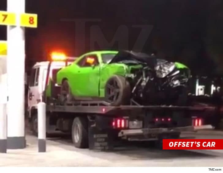 Here's what's interesting — our sources say after the tow truck arrived, 2 people pulled up in another car. We're told one of them took items out of the Challenger before it was towed … and was heard saying Offset crashed while swerving to avoid a pedestrian who had run out in front of him.