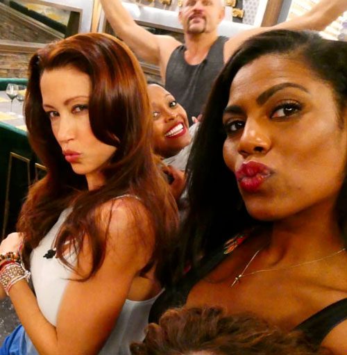 While Omarosa was absent, two of her competitors kiki-ed over what was going on with the former White House favorite. Broadway’s original Tracy Turnblad, Marissa Jaret Winokur, and the whimsically-voiced Ross Matthews are some gossipy gals.