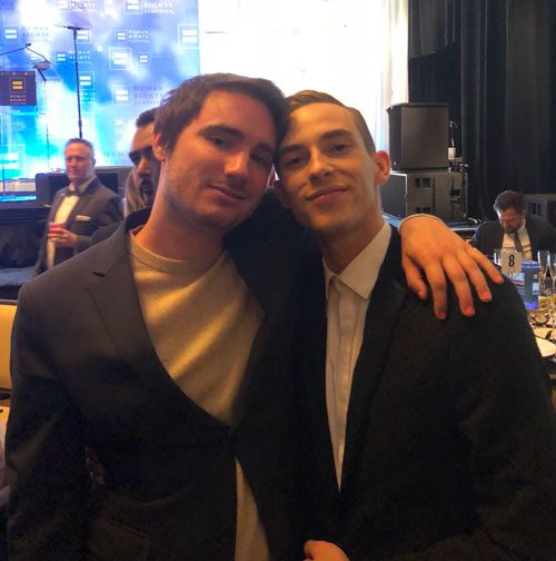 Especially wowed by Adam was veteran actress Sally Field and her son Sam Griesman. Sam posted a sweet text exchange between himself and his mom in which she urged him to pursue Adam as a love interest. Despite Sally claiming he was “mortified,” Sam was probably pretty boned when Adam responded back to him and Mom. And now they’ve met! Sam tweeted the above picture last night from a Human Rights Campaign event in L.A. Adam was given the Visibility Award. Sam added the caption, “Thanks, mom.”