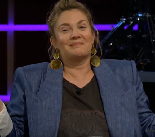 Drew was on The Late Late Show with James Corden to push the second season of SCD. James made Drew and his other guest John Boyega sit around a table of Survivor challenge-like foods to play a game of Spill Your Guts or Fill Your Guts. Each of them were asked questions, and if they didn’t want to answer, they had to open up their eating holes wide and pile in anything from bird saliva to a water scorpion to a thousand year old egg to turkey nuts. Drew’s first question was whose talk show (out of Colbert, Fallon and Ellen) has been her least favorite to do. Drew decided to find out what it’s like to mouth kiss an extra slobbery Big Bird, because she dodged the question by sucking down a load of bird saliva. The second question she had to answer was, “Rank your co-stars from most to least talented: Adam Sandler (The Wedding Singer, Blended and 50 First Dates), Hugh Grant (Music and Lyrics) and Jake Gyllenhaal (Donnie Darko).” If she didn’t want to answer that question, she had to take a turkey’s nutsack to the throat.