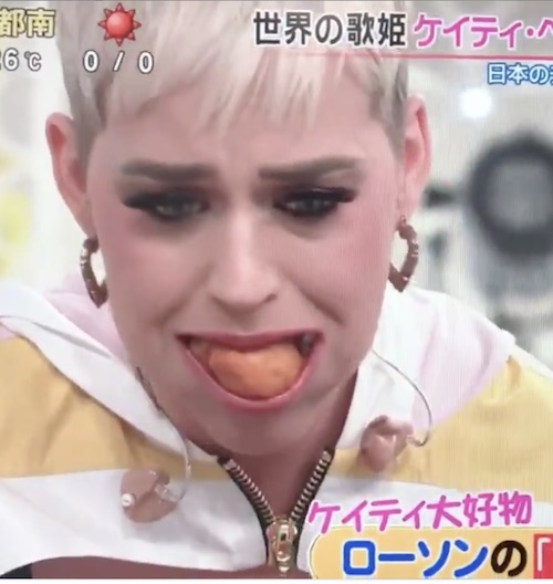 People always say they do the darndest things on TV in foreign countries, but wouldn’t it be a real gas that the joke is on us Americans and Japanese people are all like, “Let’s see what kind of weird shit we can those Yankee Doodles to do for the sake of entertainment.” The Germans got Celine Dion (I get she’s Canadian but close enough!) to gargle “My Heart Will Go On,” and now it’s Katy Perry’s turn to “shine” by showing the Japanese people how many chicken nuggets one pop princess can take.
