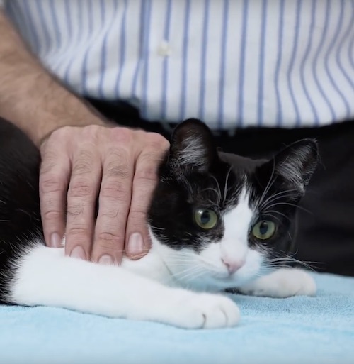 Dr. Burstyn introduces us to Claudia and promises this is going to be “a fun little video,” and I don’t doubt him for a minute! Dr. B says it’s important to first introduce yourself to the cat and let it sniff your hand. Claudia seems about as interested in introductions as muscle daddies were in me back in my fun years. He proceeds to perform all the acts on Claudia that you’re not supposed to do, like swing her around, and then, in what is sure to have sent many a PETA member into cardiac arrest, he advises to “squish that cat” anytime she tries to run away from you while giving it a pill or cutting its nails.