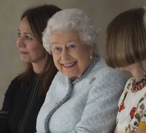 While THE QUEEN may dress like she sits front row at every Talbot’s fashion show, the Richard Quinn show was actually her first at London Fashion Week. THE QUEEN was there to present the new Queen Elizabeth II Award for British Design to Richard Quinn. The Sun says that Richard Quinn’s designs have been described as having a touch of ball gag chic: