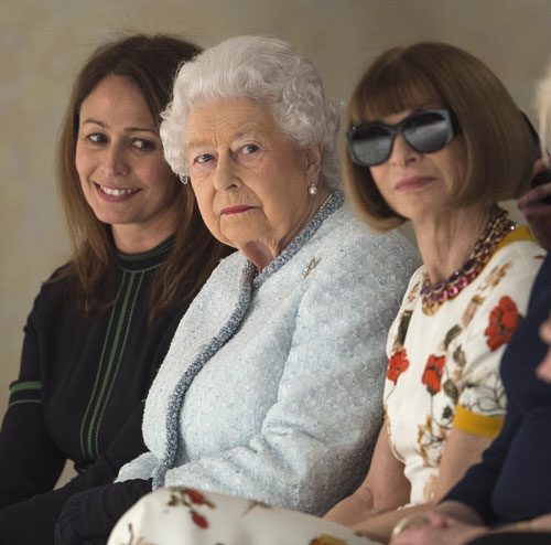 As all of England riots in the streets over KFCs being out of chicken (Joke’s on those people, because KFC has always been out of chicken since the shit they serve is deep fried chicken-flavored Styrofoam full of hormones. Get thee to a Popeye’s, England!), THE QUEEN was safe inside a fashion show with Satan’s muse Anna Wintour. THE QUEEN held court at the Richard Quinn show, and she wore elegant black gloves to protect her pristine royal skin from being infected by dirty trash peasant germs.
