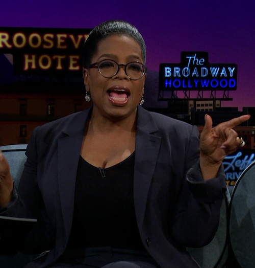 Oprah was there with Reese Witherspoon and Mindy Kaling to promote A Wrinkle In Time. James Corden had first asked her if it was a pain in the ass buying gifts for Stedman Graham, and she said only the time she gave him a wise-ass, er, actual three wise men gift of gold, frankincense, and myrrh. He liked that about as much as anyone would (“Uh, O, why couldn’t you just get me the new James Patterson novel?”), so now he only gets cornbread, which seems like a winning strategy.