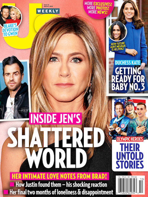 Starting with People, who have dedicated this week’s cover to JEN’S HEARTBREAK. A source says sad, miserable Jen is sad and miserable.