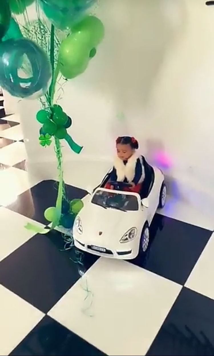 The birthday boy also shared a short video on Snapchat of Dream playing with a white toy car next to a bouquet of green balloons while festive holiday music played in the background.