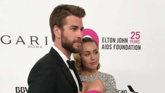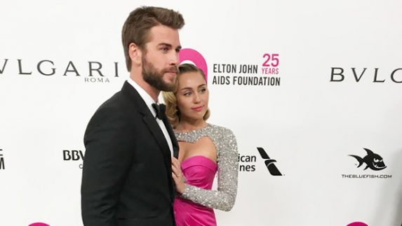 Miley Cyrus & Liam Hemsworth Cuddle Close At Elton John’s Oscars Party — Pic
