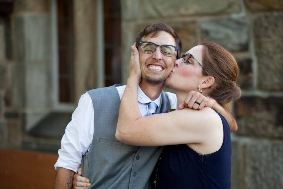 The two tied the knot at Green Lakes State Park in Fayetteville, NY, and the ice blue glacier lake was the perfect backdrop. Guests then headed over to a private residence where they enjoyed a lovely outdoor dinner, giant Connect Four and Jenga, and macarons baked by the bride herself.