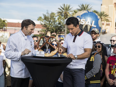 “Extra’s” Mario Lopez got the lowdown on all the food available at Universal Orlando Resort. Some of the restaurants on Universal CityWalk include the NBC Sports Grill & Brew, Jimmy Buffet’s Margaritaville, and the Cowfish Sushi Burger Bar.