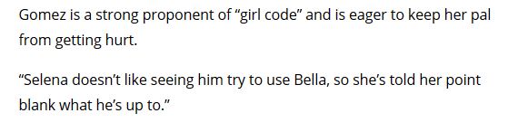 In any case, the outlet goes on to contend that Gomez is a believer in the “girl code,” and is “eager to keep her pal from getting hurt.” Those claims are bit strange, considering Gomez herself was accused of backstabbing Hadid and breaking the “girl code” by hooking up with The Weeknd in the first place. That led some publications to clarify that from Gomez and Hadid weren’t close friends, at least according to the singer’s perspective, so there was no wrongdoing. It doesn’t make much sense then to claim Gomez is suddenly concerned about her “pal” getting “hurt.”