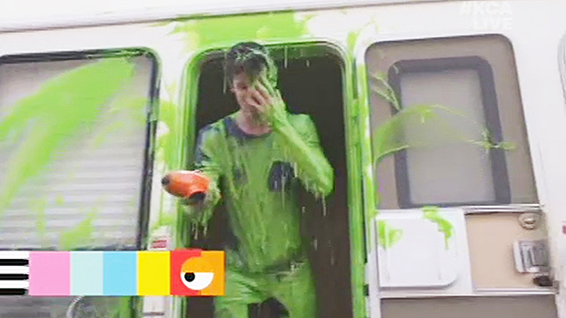 Is this a first? Shawn Mendes, 19, wasn’t able to make the 2018 Kids’ Choice Awards in Los Angeles on March 24, so the show came to him! He was up for Favorite Male Artist, and host John Cena tossed the action to Nickelodeon star Jace Norman, who was on a movie studio lot and creeped up on Shawn’s trailer with a couple of guys carrying massive buckets of green slime. Jace knocked on the door, pretending he was a production assistant, telling Shawn “We need you on set.” He came out to get clobbered head to toe in the green stuff.