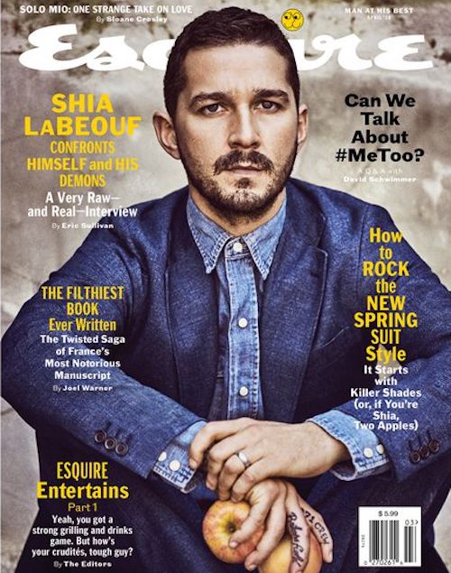 In October Shia plead guilty to disorderly conduct and was sentenced to one year probation and anger management, and was required to pay $2,680 in fines. And now he’s on the cover of Esquire looking pensive while holding apples. I think the only thing more white privilege-y than that might be threatening to kill the officers arresting you and implying you’ll burn their police station down. Which is crazy, because how in the world did a severely drunk, delusional Shia not threaten to burn something down at least once?