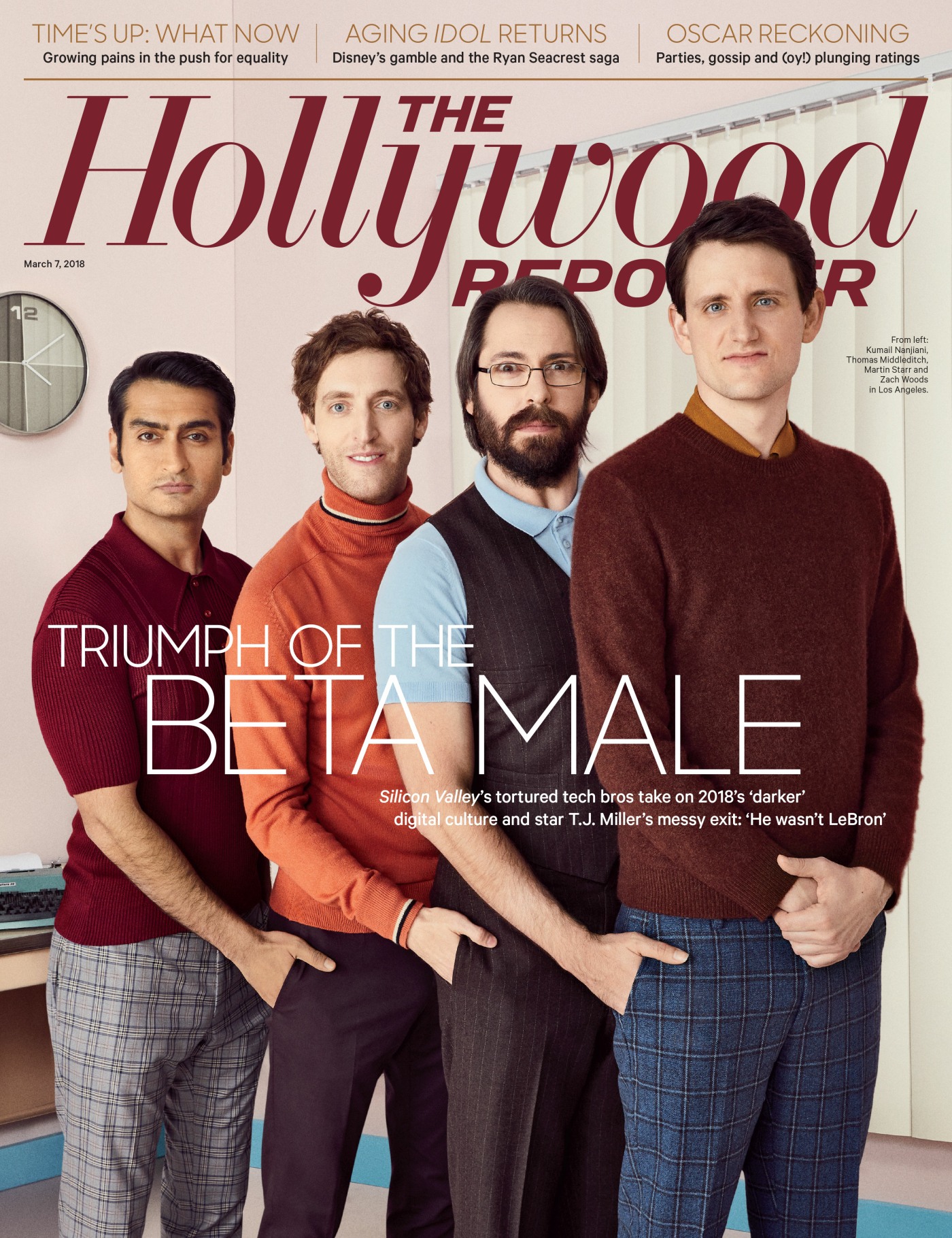 March 8, 2018Silicon Valley is, I believe, a pretty accurate representation about what really happens within many actual Silicon Valley groups. Obviously, it doesn’t represent the obscenely-wealthy-yet-clueless-about-real-life part of Silicon Valley, but the idea that these “(beta) bros” would actually exist in Silicon Valley right now, today, yes… I believe it. Just like I believe the show is just as messy, problematic, toxic and bro-culture-y as the real Silicon Valley. That’s what the new Hollywood Reporter cover story is about – the success of the show, the growing pains, and of course, how TJ Miller exited the show in a garbage-fiery, self-defeating downward spiral of douchebaggery. You can read the full THR piece here. Some highlights: