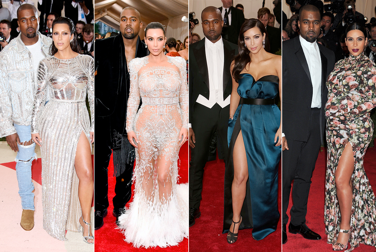 At their most recent Met Ball appearance in 2016, West wore a dress code-breaking pair of ripped Fear of God jeans teamed with a crystal-covered Balmain jacket and icy blue contacts. Kim matched her man in Balmain, but her look paid homage to the theme, “Manus x Machina: Fashion in an Age of Technology.”